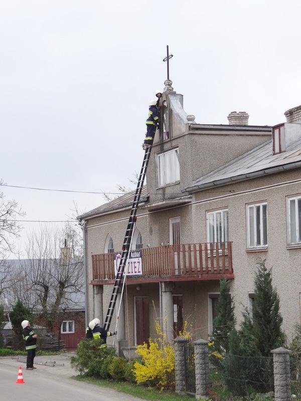 Demontaż krzyża i figury ze strarego kościoła